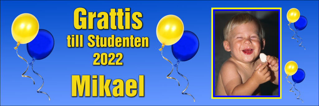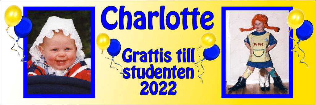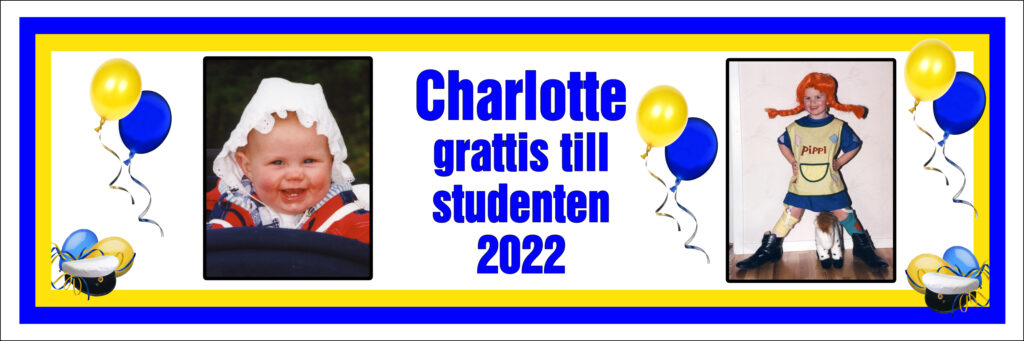 Dom vanligaste studentbanderollerna brukar ha en bild från när examensbarnet var liten o kanske i någon knivig situation, gärna så man stannar till o njuter o tänker sig tillbaka.
